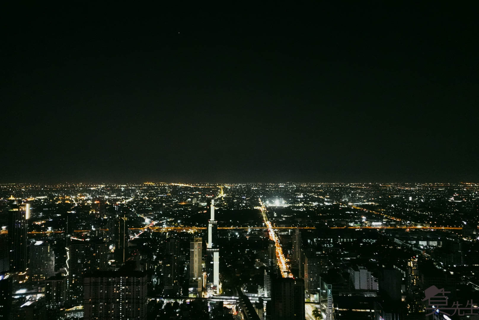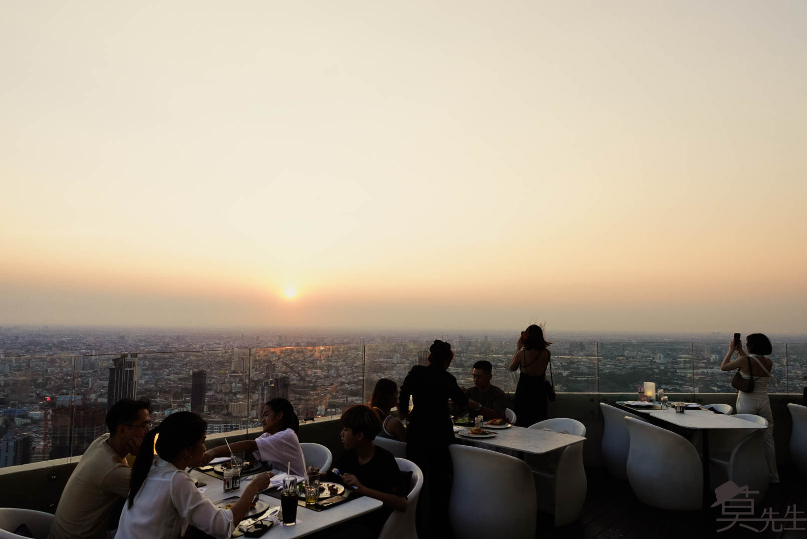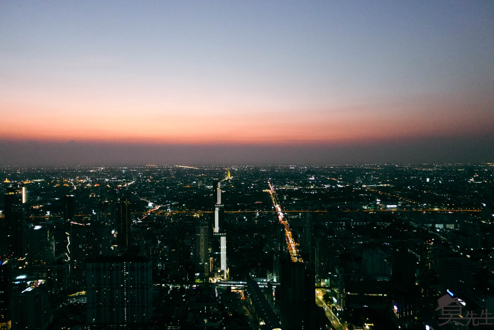 我們差不多五六點入場,這時候還是白天,看得到曼谷市的太陽慢慢西沉,變黃、變橘、變紅,到夜幕升起,繁華的燈光閃爍著像地上的星星。