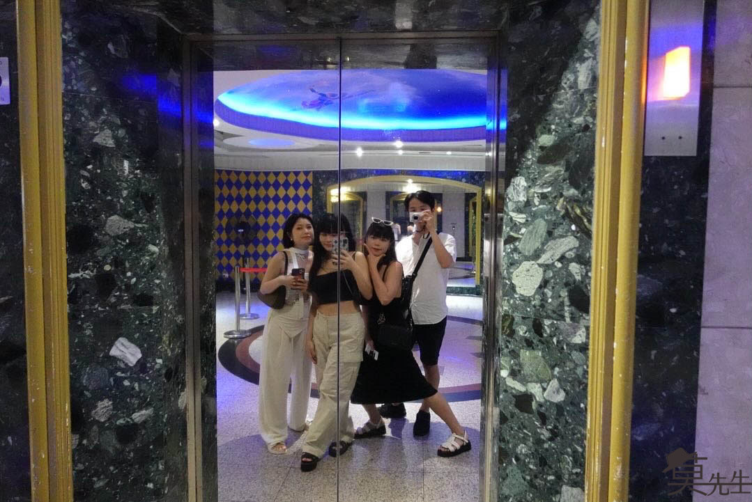 走進來電梯廳超像錢櫃。這邊電梯要等超久,還要中途換電梯,算是比較麻煩的一點。