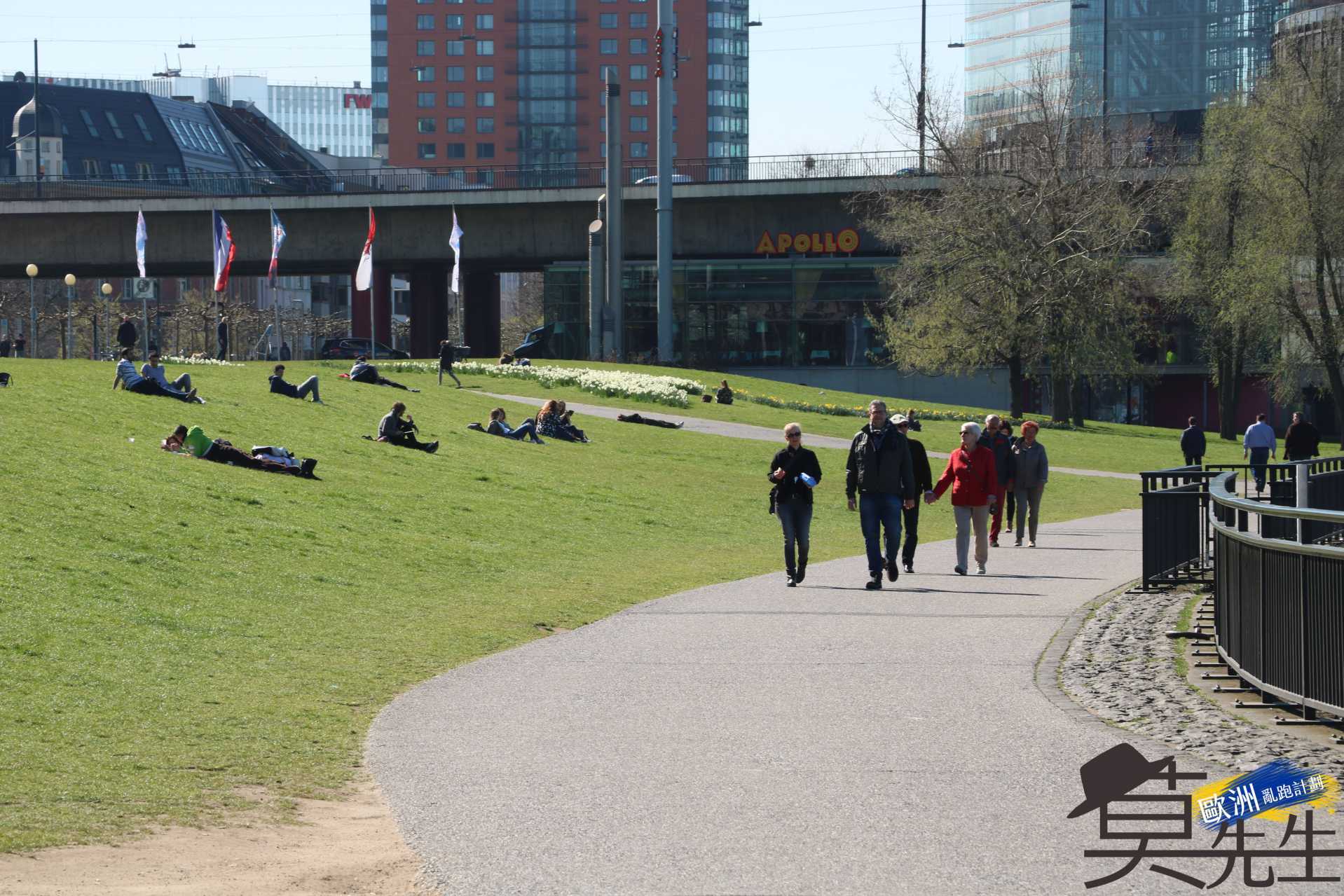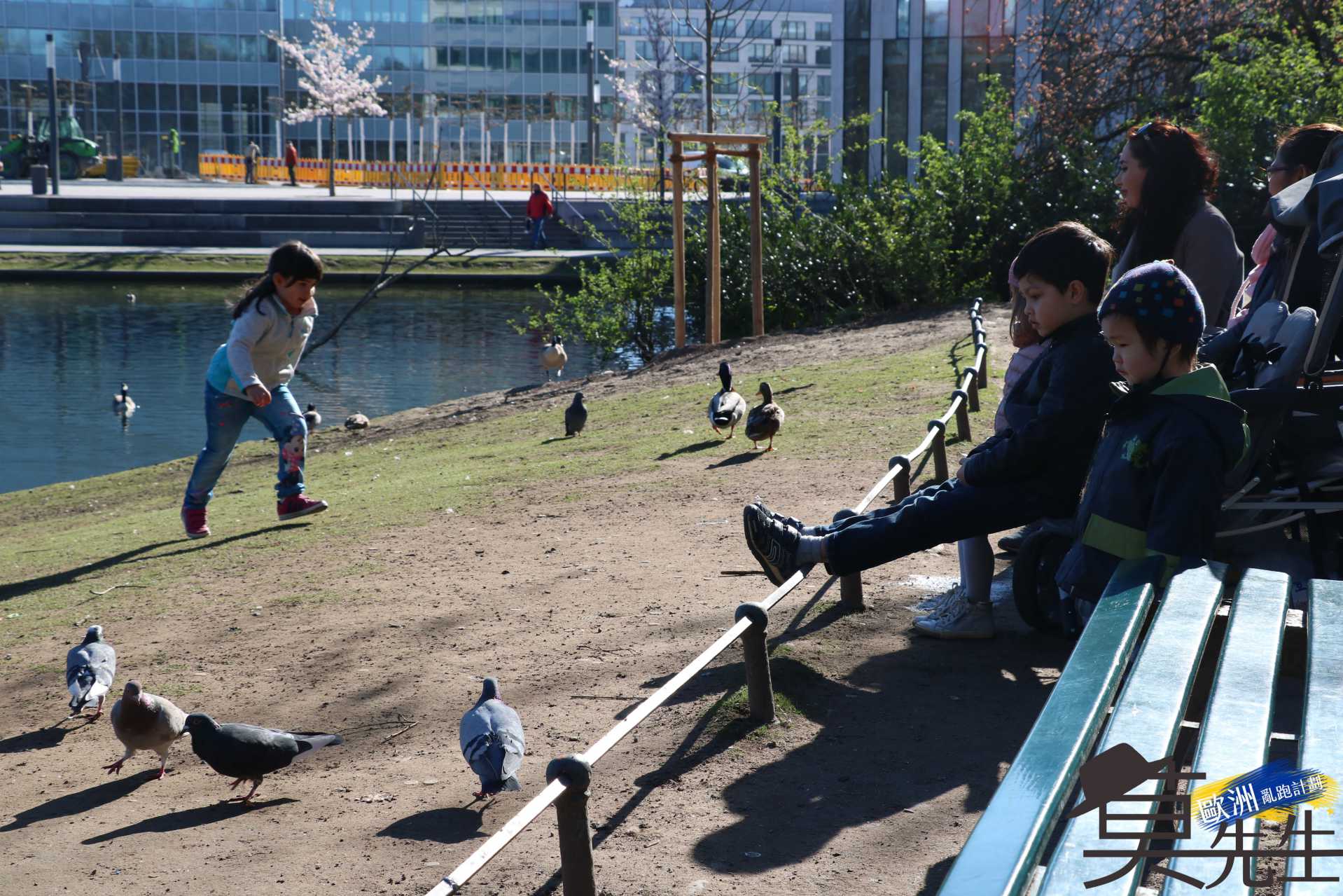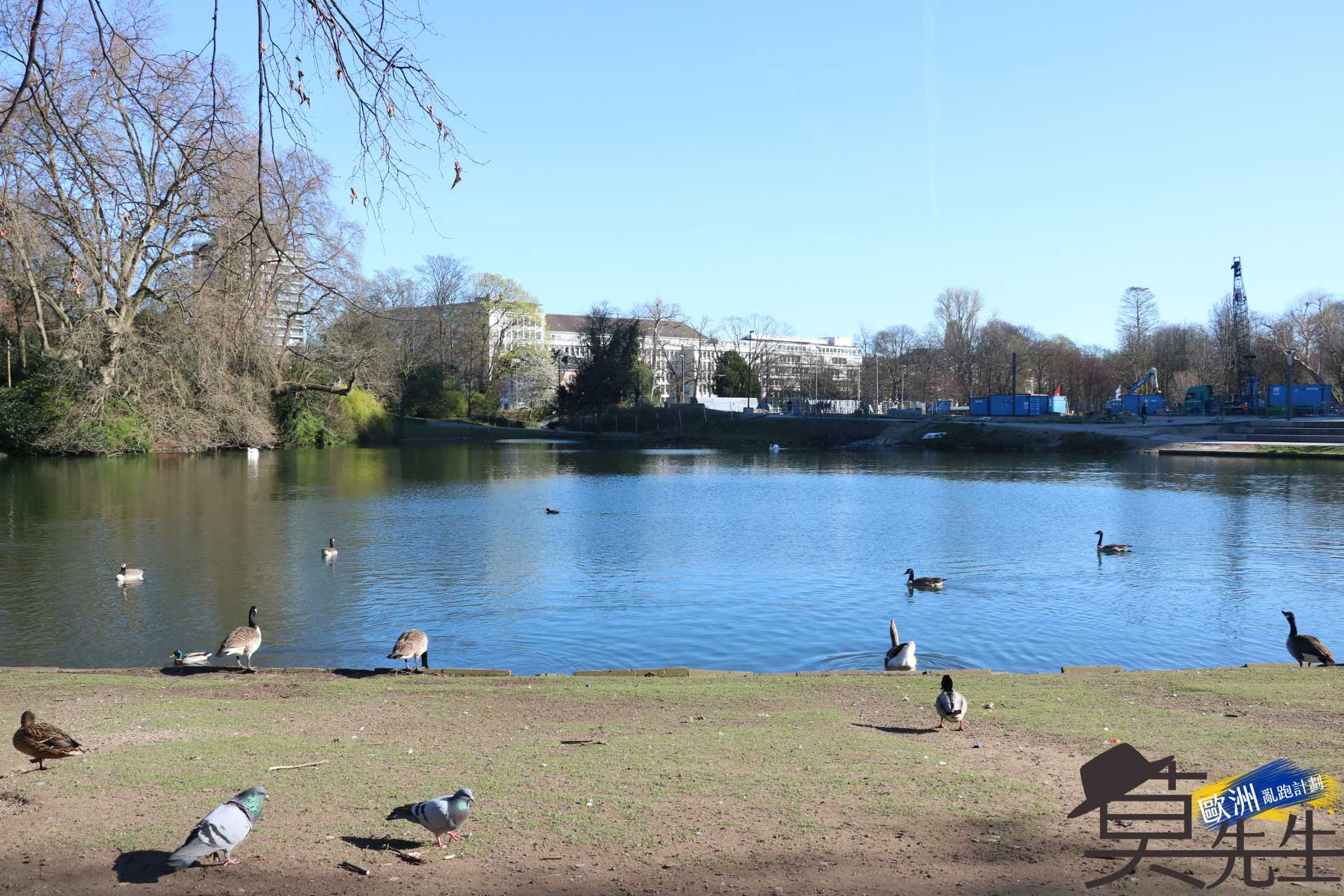 坐在湖邊,與對面的精品大街國王大道形成兩個世界。