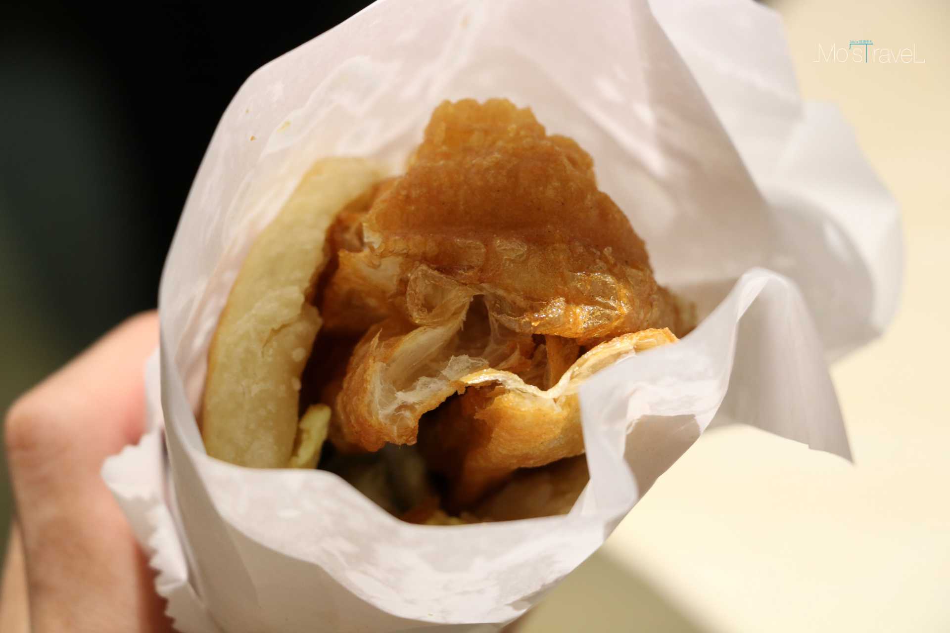 即便是薄皮,也很紮實,不會像有時候吃到的燒餅油條,裡面是中空,鬆鬆的;油條吃起來也很不會很油膩,是可以接受的好吃的油條。