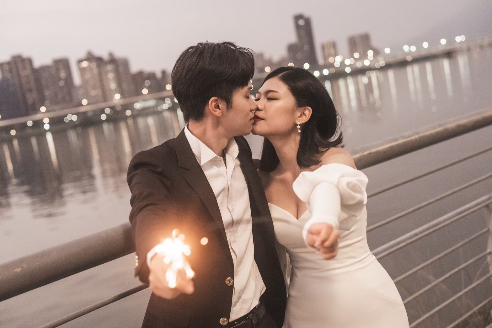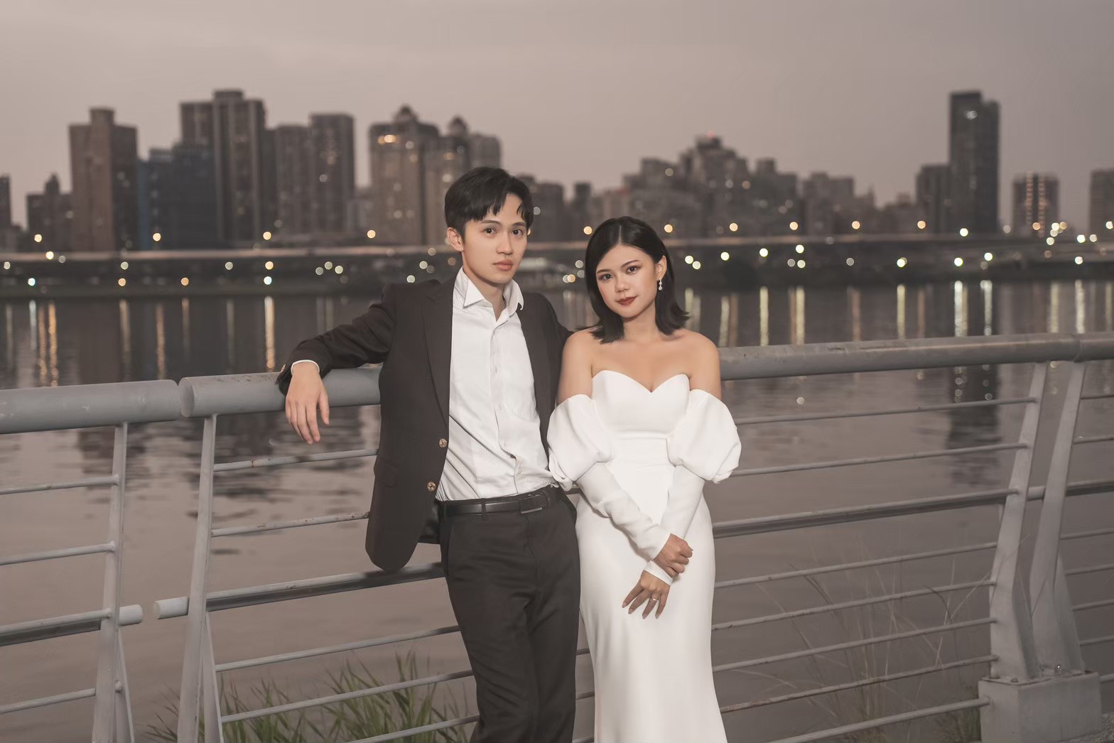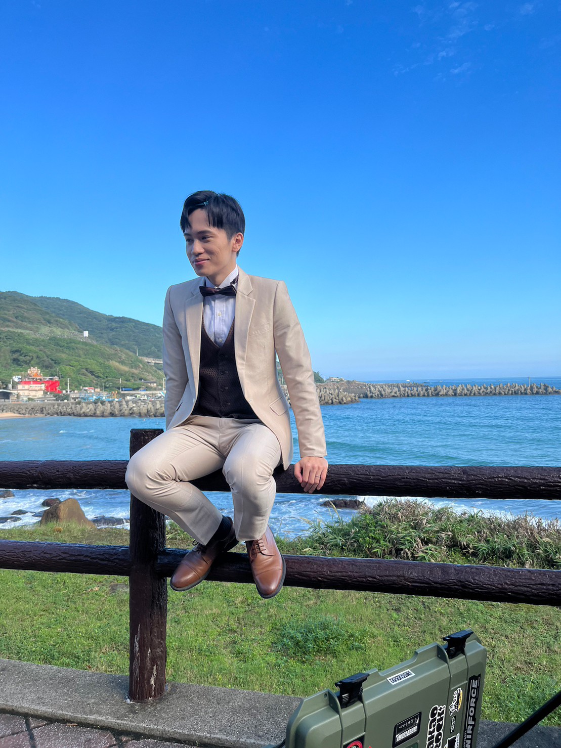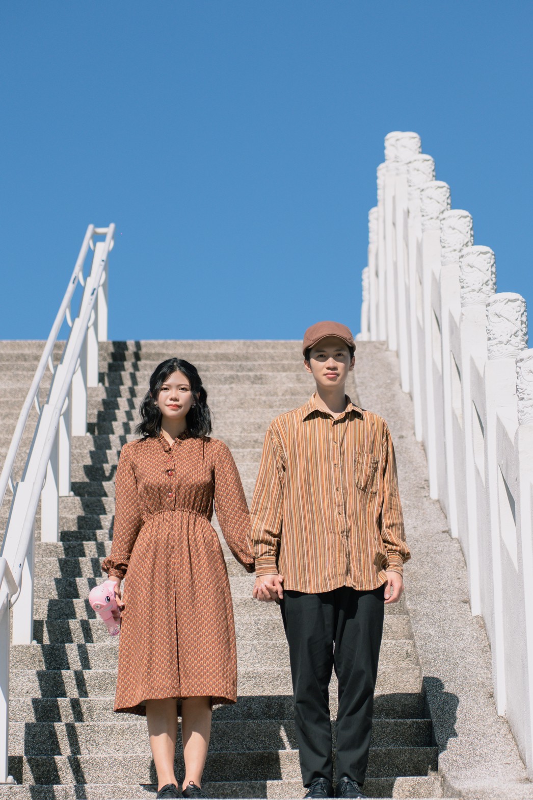 我們拍攝的時間花了一整天,早上基隆、下午大湖公園、傍晚大稻埕,取三個景,共有兩套婚紗 + 一套便服,拍攝的過程真的是最累人的。