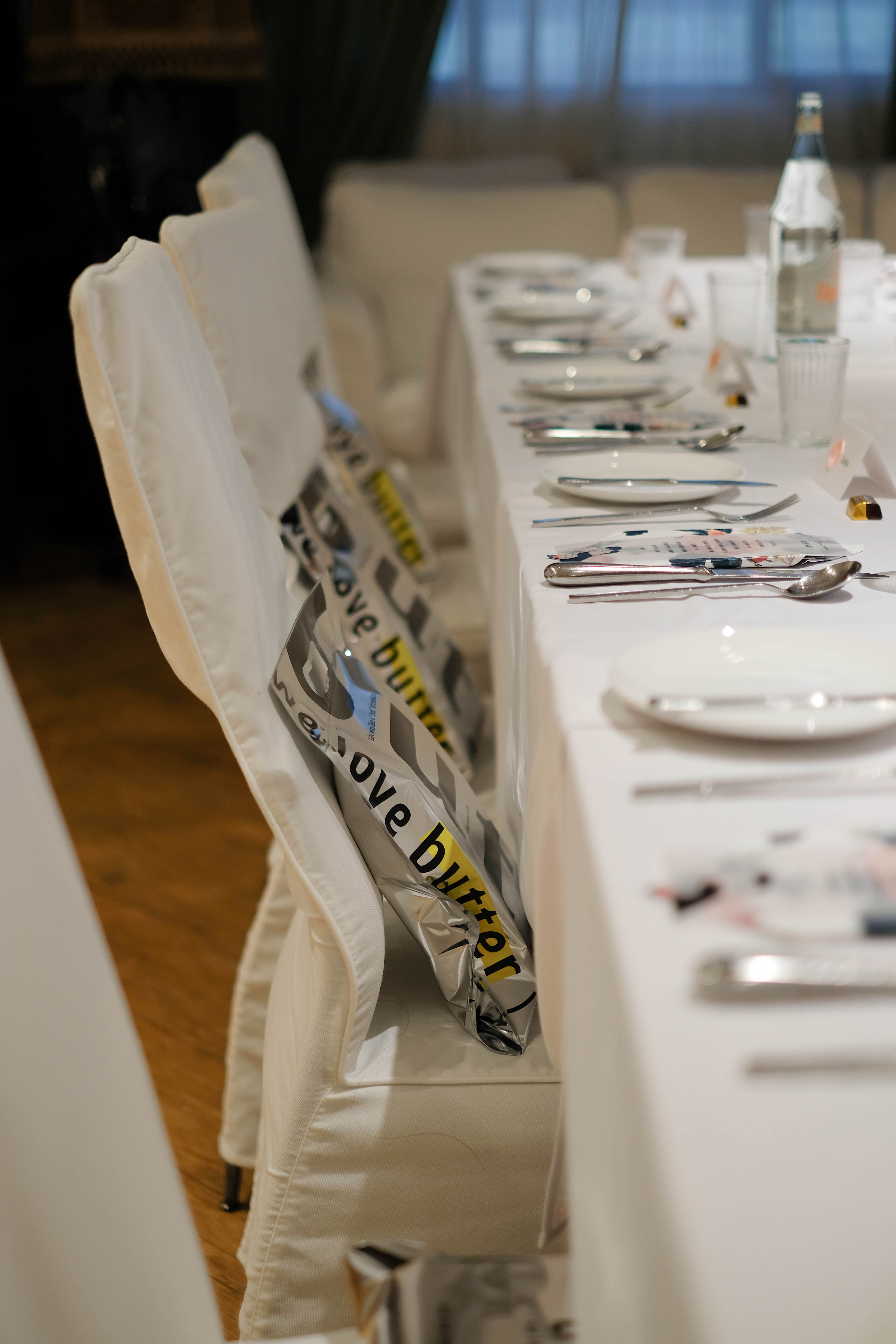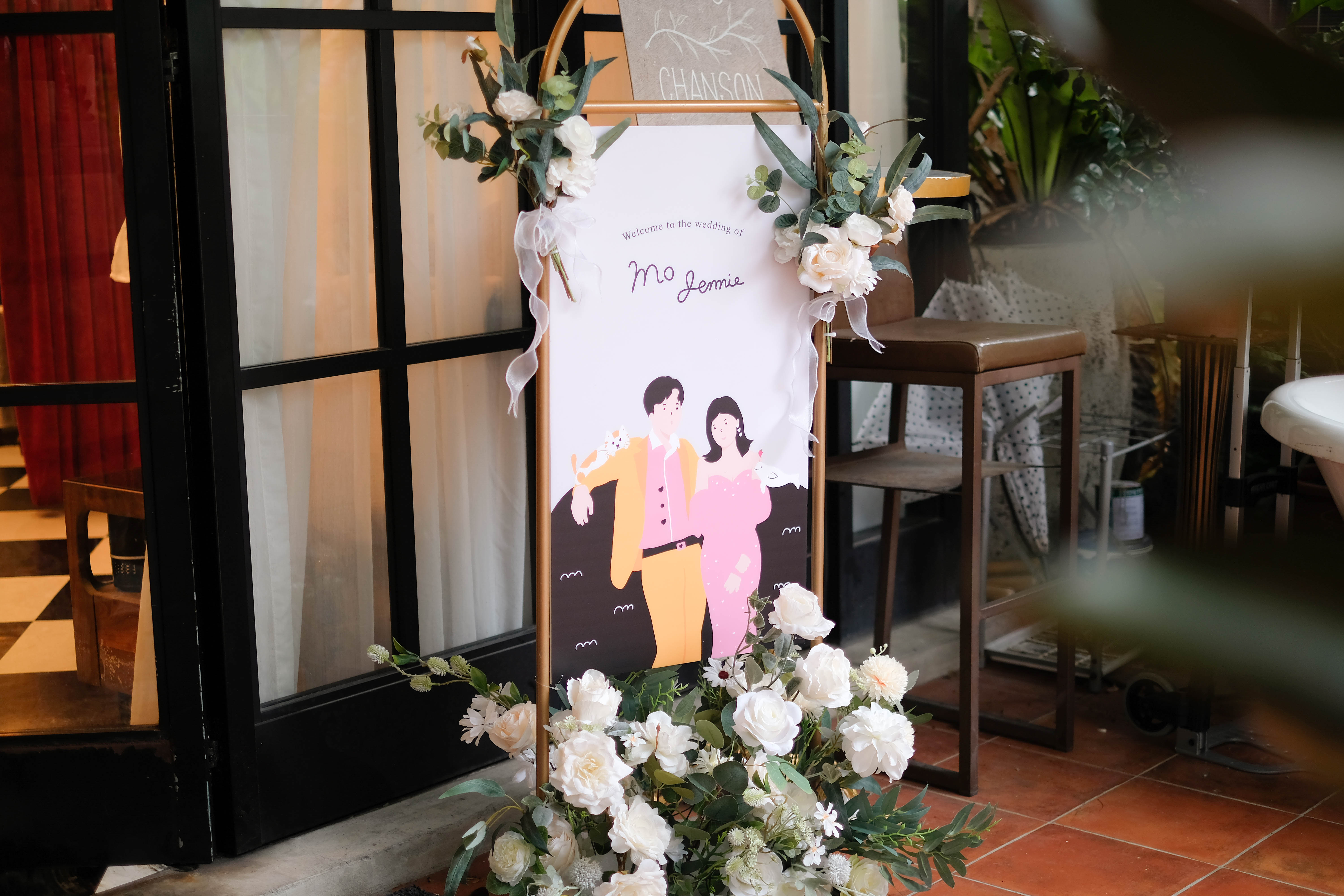 我們從最一開始準備,到所有宴會結束,歷時大約一年半。由於我跟另一半都很不希望走傳統婚禮的道路,因此一切都是自己準備。也因為另一半是設計師的關係,我們婚禮的視覺都是自己處理。