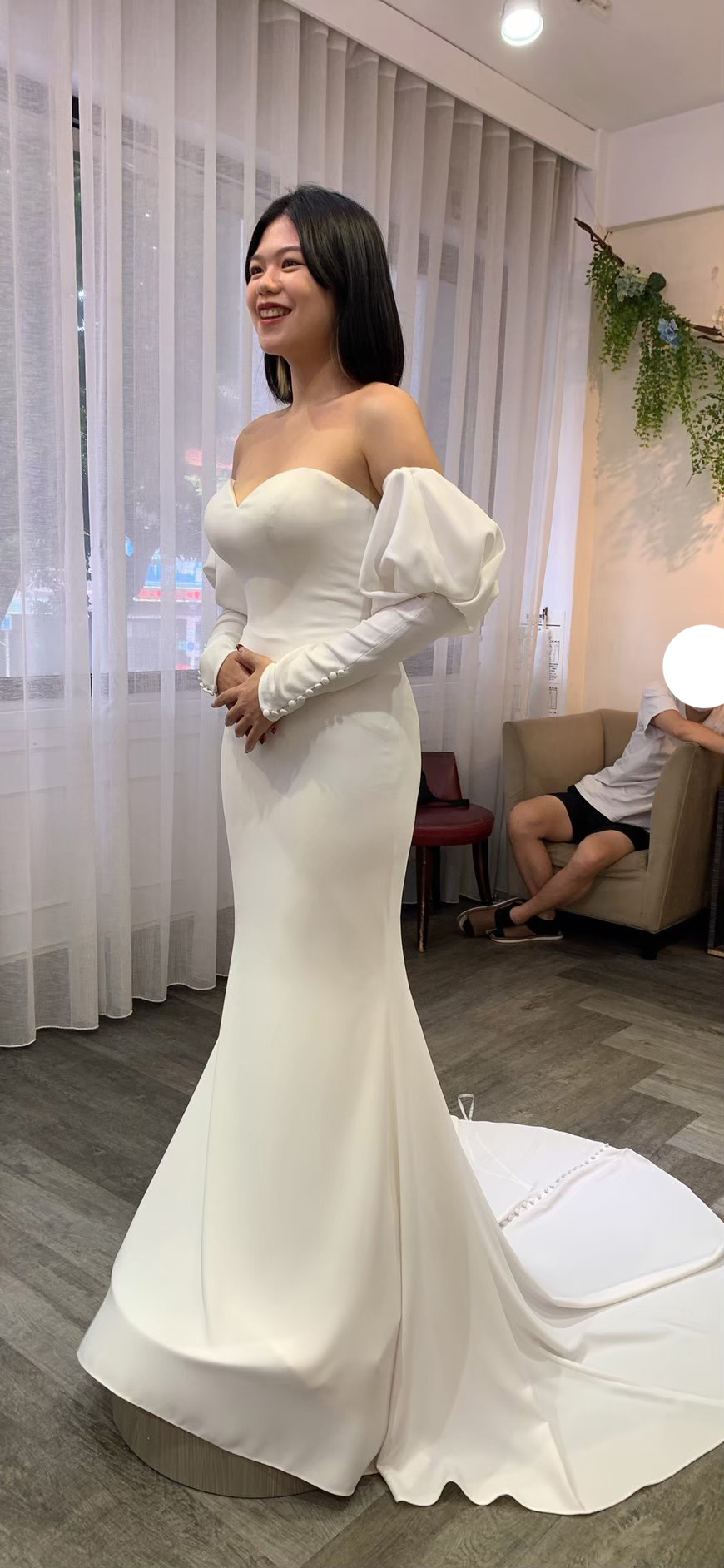 老闆娘很風趣,試穿的阿姨也很專業,因為不是大型婚紗店,一個客人擁有一層樓的試穿空間,很大且很隱私。整體我們就在自在且愉快的試穿體驗中度過 (但女友覺得我這個男友意見很多)。